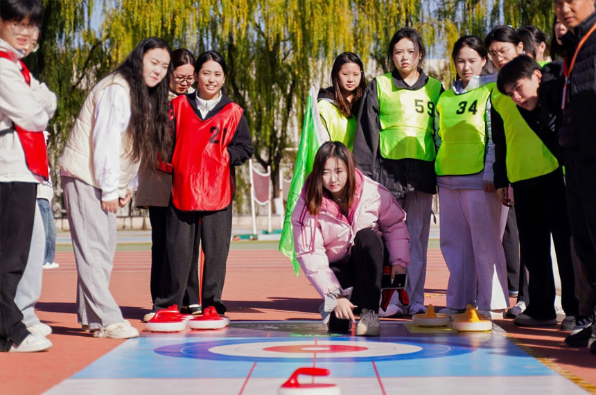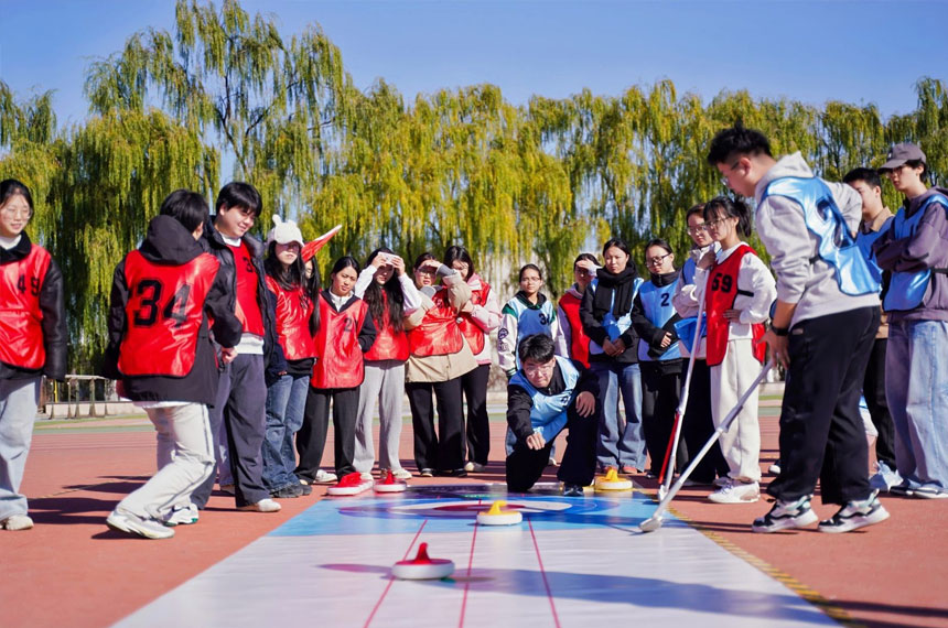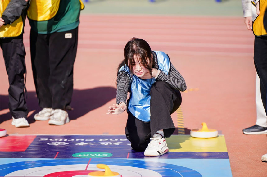 每队10人参赛,要求参赛队员站在起点线的位置依次投篮(使用的球为瑜伽球),每人有5 次投掷机会,最后累计本组总进球数,次数多的小组名次前列