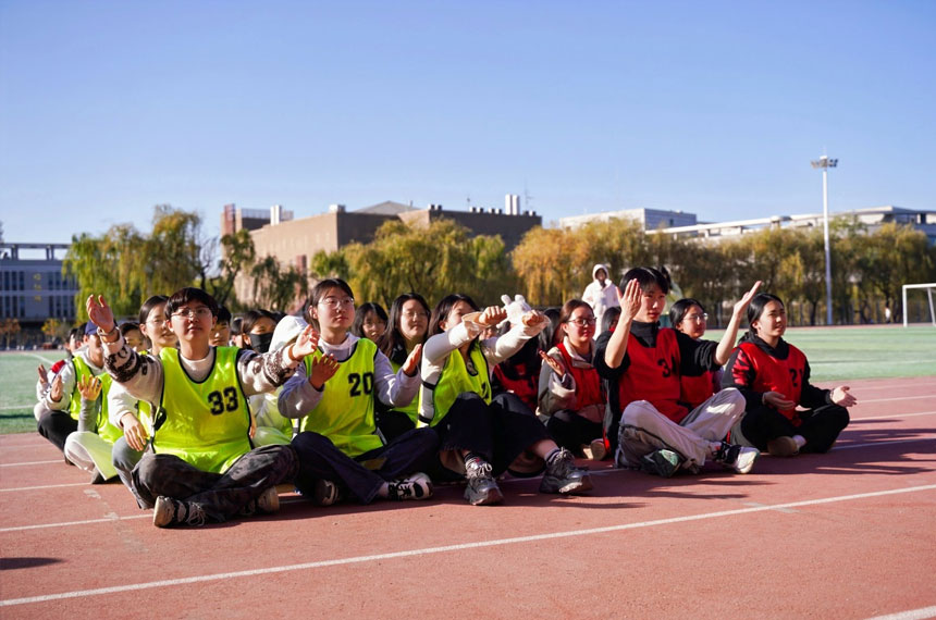 每队10人参赛,要求参赛队员站在起点线的位置依次投篮(使用的球为瑜伽球),每人有5 次投掷机会,最后累计本组总进球数,次数多的小组名次前列
